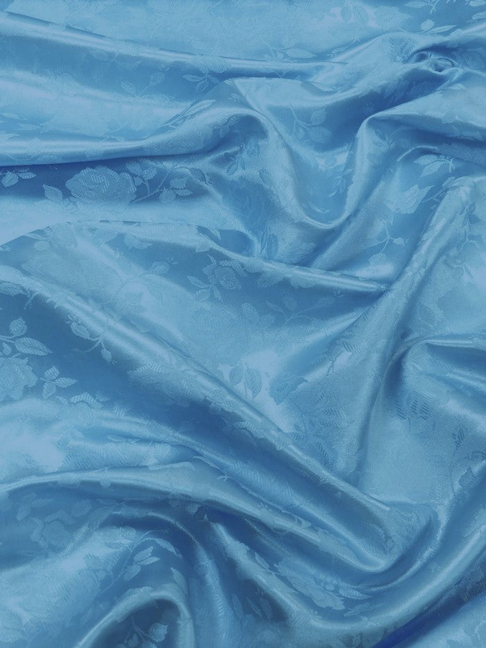 The detailed jacquard weave enhances the depth and dimension of the floral motifs, making it perfect for projects that demand grace, texture, and a luxurious finish. Elevate your next creation with this timeless satin fabric.