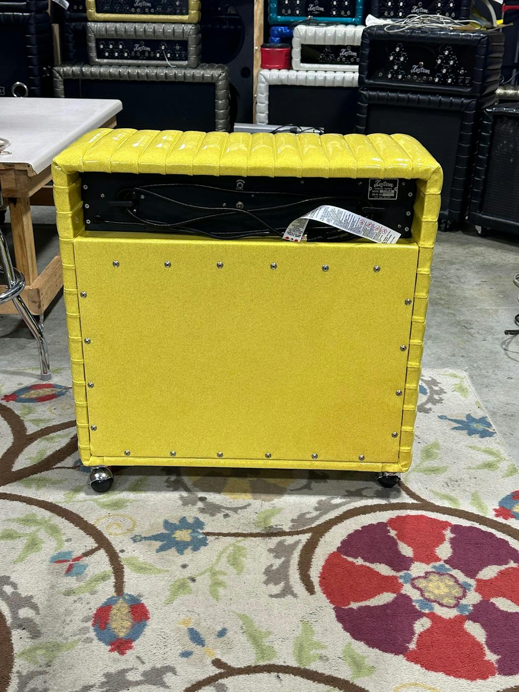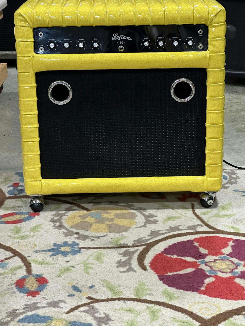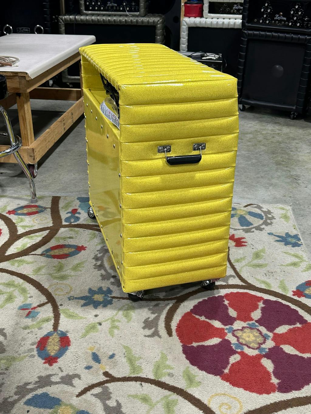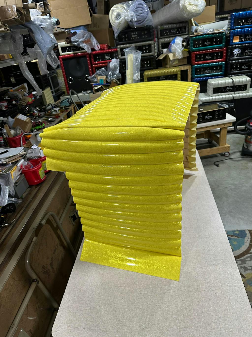 I used your Yellow Ultra Sparkle Glitter Upholstery Vinyl Fabric sewn as Tuck & Roll restoring a 1969 Kustom K150-6 Amplifier